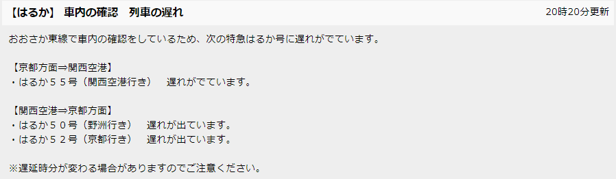 推 bytsubasa : 昨天晚上關西機場7:46那一班車還沒開到天王寺就突然 10/12 06:50