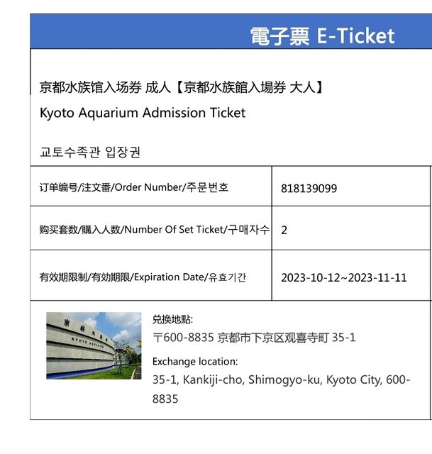 標題[讓售] 京都水族館兩大兩小至11/11