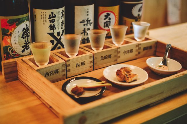 西宮鄉、今津鄉)五種酒品,以及相對應的3種下酒菜(每日更換)。