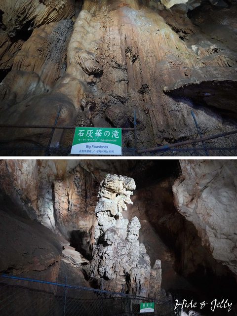 像是比較大的瀑布的「石灰華の滝」(石灰花瀑布,上圖),還有比較像哥吉拉的「嚴窟王