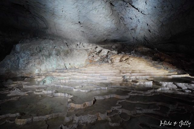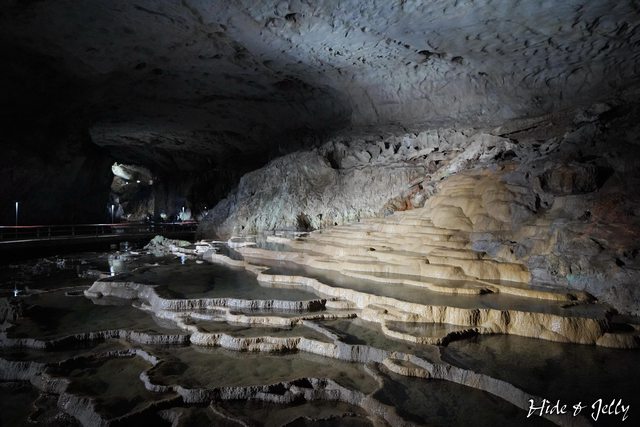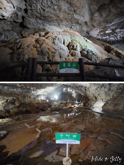 除了「百枚皿」之外,洞內還有另一個圓盤狀鐘乳岩區「千町田」,就像是梯田一樣,一