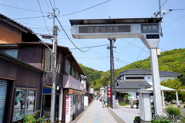 果在大太陽底下走會有點辛苦。而在秋芳洞的入口前有段像是神社、寺廟參道般的商店街