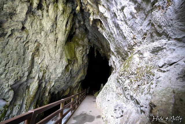 秋芳洞的洞口,就已是滿滿的石灰岩地形樣貌,洞內雖然一片漆黑,但從內往外吹的風蠻
