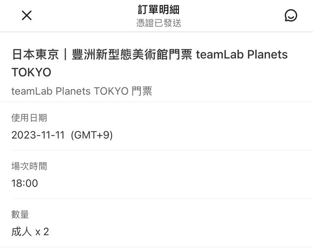 豐洲team lab 大人門票*2(2023/11/11 18:00)