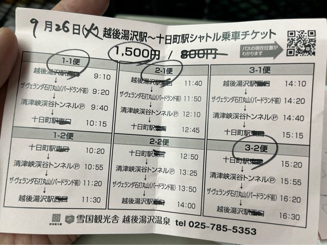 原本考慮搭南越後觀光巴士(湯沢~清津峽線,500円),但車次不多。後來訂雙K及A訂