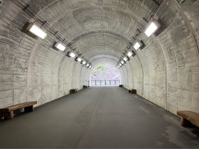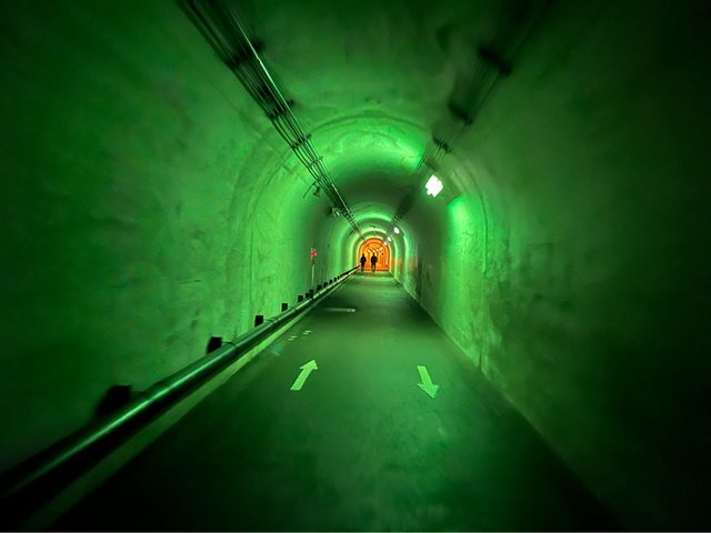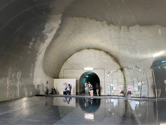 清津峽隧道全長750公尺,為了避免拍照要久候,我們決定先走到最後的鏡池。一開始是