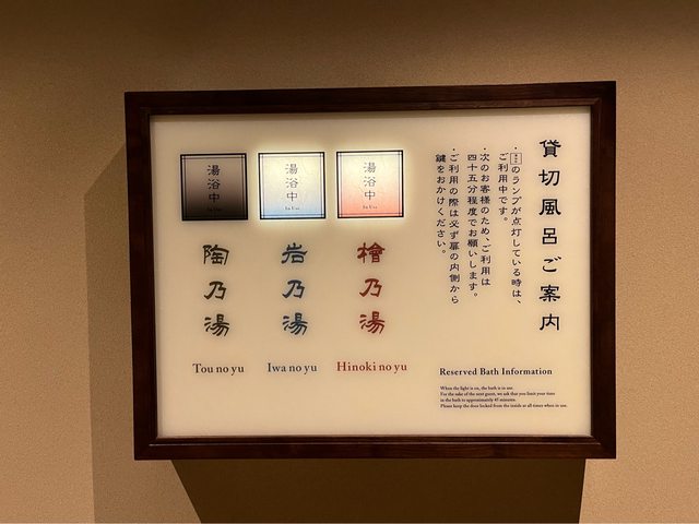 除了設備完善的大眾湯,還有3間免費的湯屋(檜、岩、陶)可以使用。泡完湯,晚上有
