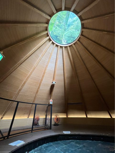 入口處有間紀念品商店,2樓有免費的溫泉足浴,天花板有鏡面開口,可欣賞周圍景色。