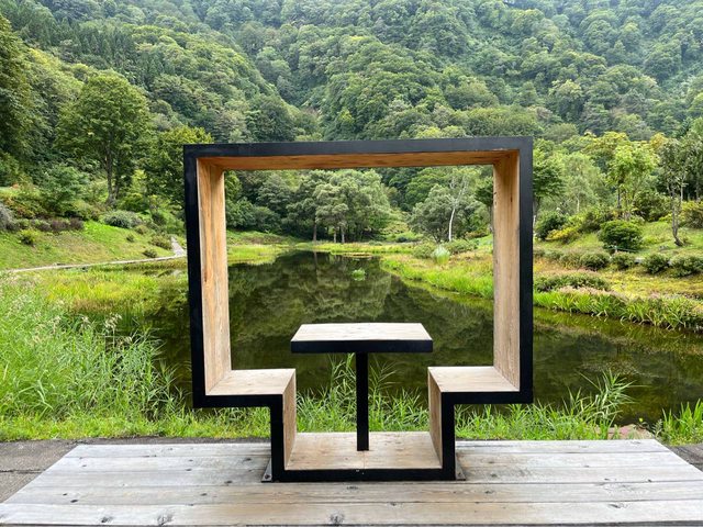 拍照熱點,園區也貼心擺放木頭架子、方便自拍。逛逛園區,看看湯澤高原的季節花卉及
