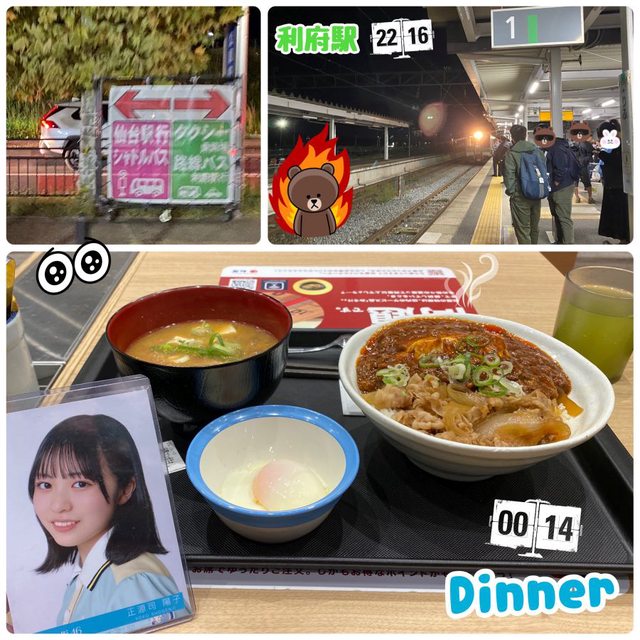 找了間松屋補充下從下午飛機降落仙台後就都沒吃喝東西、快要流失光的體力