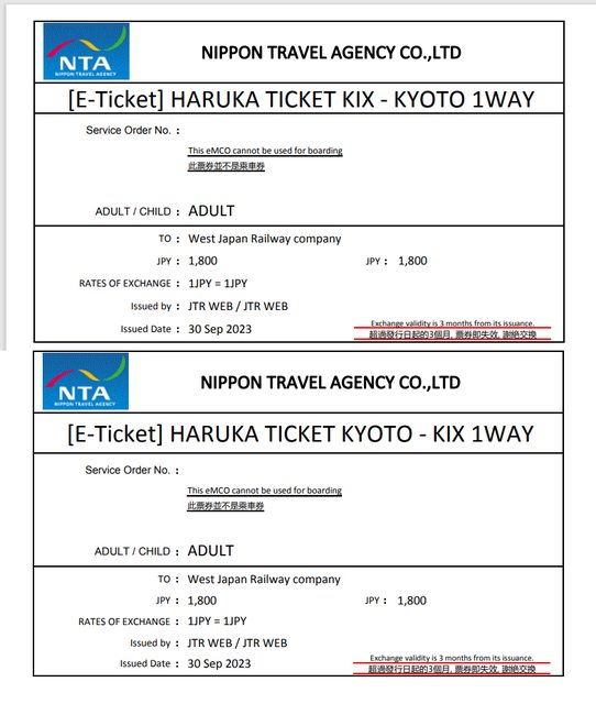 標題[讓售] Haruka 京都-關西機場 單程票2張(成人)