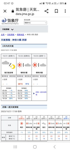 推 ilove1530 : 完整版也是tenki.jp(?) 10/22 06:39