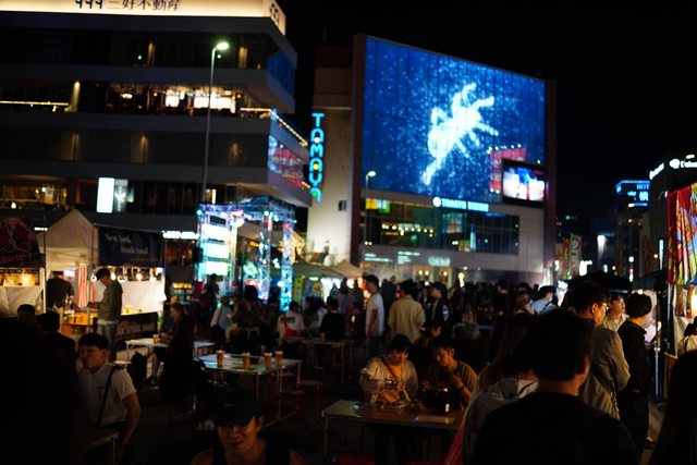 雖然是平日的晚上 但這邊的屋台也坐滿了人