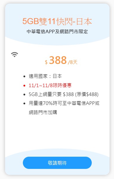 推 elthy : 還不如po 11/1-11/8申請 5G特價388 10/25 18:09