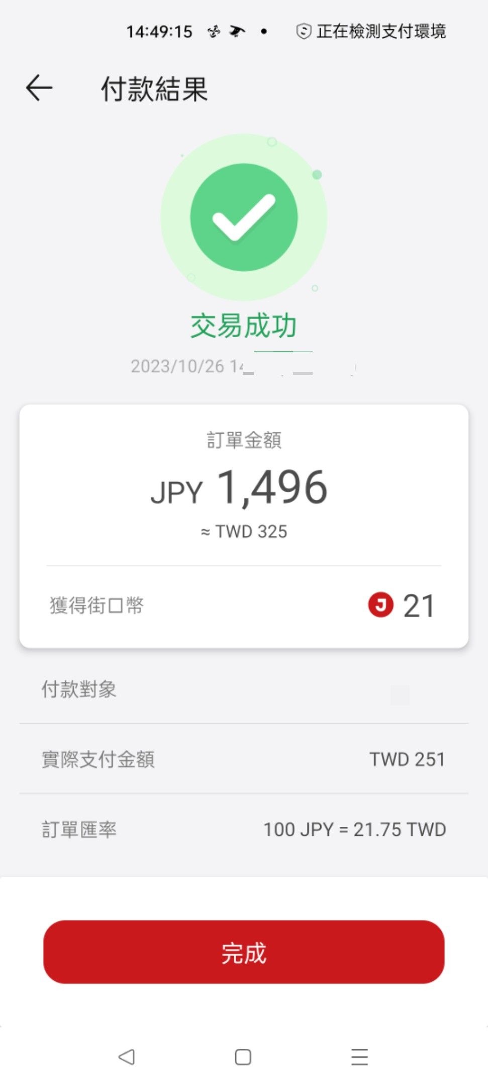 推 flosser : 街口Paypay 21.75 10/26 14:49