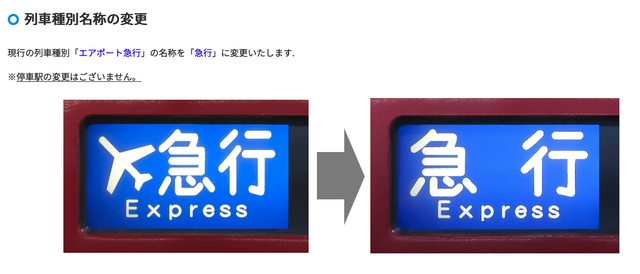 同時宣布「機場急行」(エアポート急行)全部改為「急行」,班次、停車站全部不變