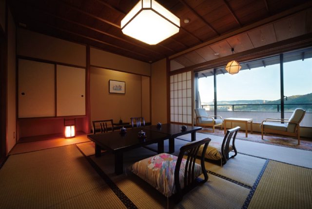 1.和室15畳+6畳 最上階:位於頂樓,所以視野寬廣。日幣42000間/晚。