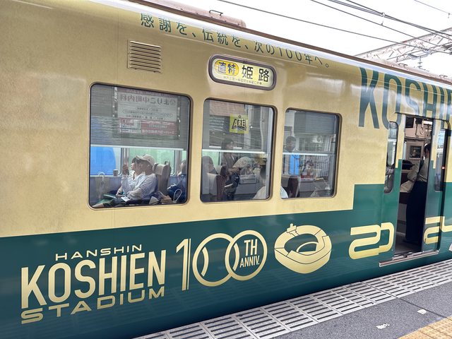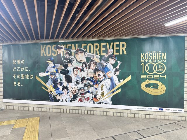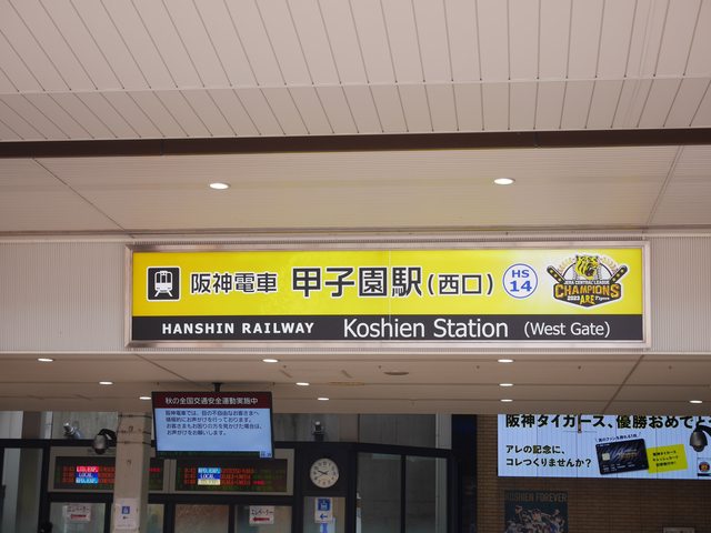 一到甲子園主場更不一樣,連車站看板都換了呢!