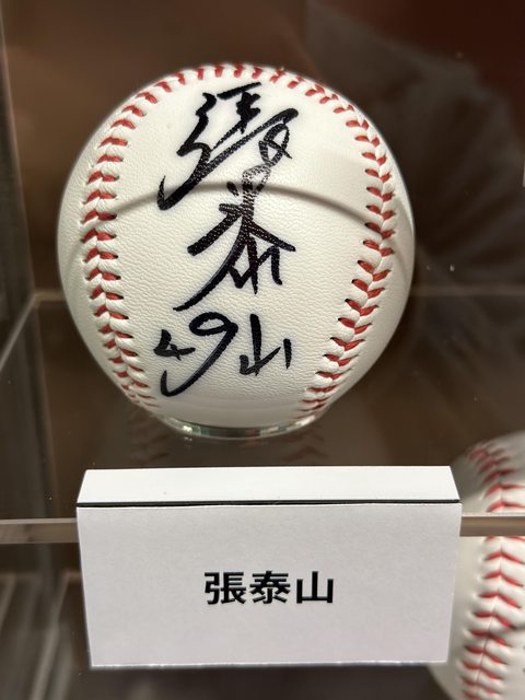 名人簽名球的區域也有收藏張泰山選手跟啦啦隊女孩的簽名球。