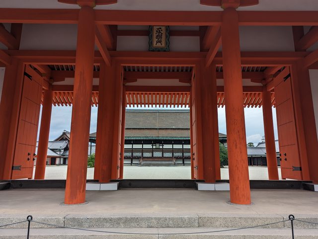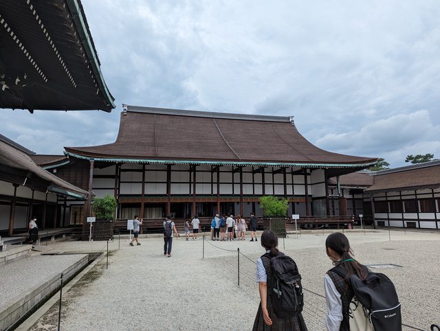 東本願寺的建築也是相當華麗壯觀 接著搭地鐵前往京都御苑 本來想從最南邊的門進去逛,但因為腳痛就算了 從側門進去,參觀宮殿也是走這裡