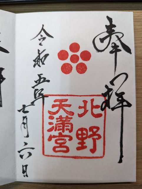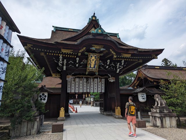 店內只賣一種拉麵,另有炒飯或煎餃等套餐搭配 我點的是拉麵+炒飯套餐,拉麵是以醬油基底的高湯,撒上滿滿的青蔥 上桌後淋上加熱過的蔥油,立刻噴出如火山爆發般壯觀的烈火 蔥油雖然燒掉不少,但可能有人還是會覺得油膩,我自己是覺得還好 加上炙燒過的青蔥帶有焦香,吃起味道不錯 另外炒飯是老闆用中華鐵鍋大火快炒,米飯粒粒分明且有鍋巴的香味 飯後前往北野天滿宮,是全日本天滿宮的總本社,供奉學問之神菅原道真公