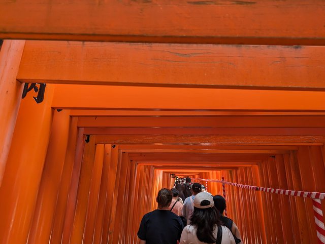 依然是人滿為患,不愧是一級觀光景點 走了一段千本鳥居也是塞滿人,意外的是這邊的鳥居並不大,長的高可能還會撞到頭