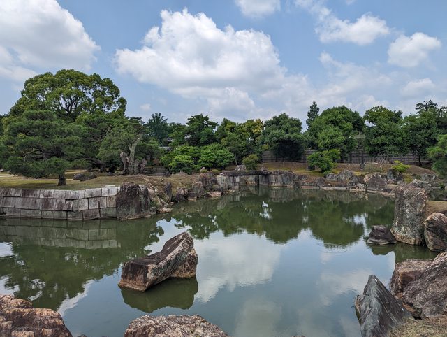 不論是城門還是宮殿都比天皇居住的京都御所還氣派 宮殿可以入內參觀,但內部禁止拍照 裡面相當的氣派,不論是屏風還是天花板都有華麗的繪畫以及金箔的裝飾 宮殿外也有廣大的庭院