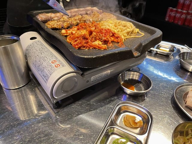 肉的部分店員會來幫忙烤,再自行夾著生菜&其他醃漬物一起吃,蠻不錯的