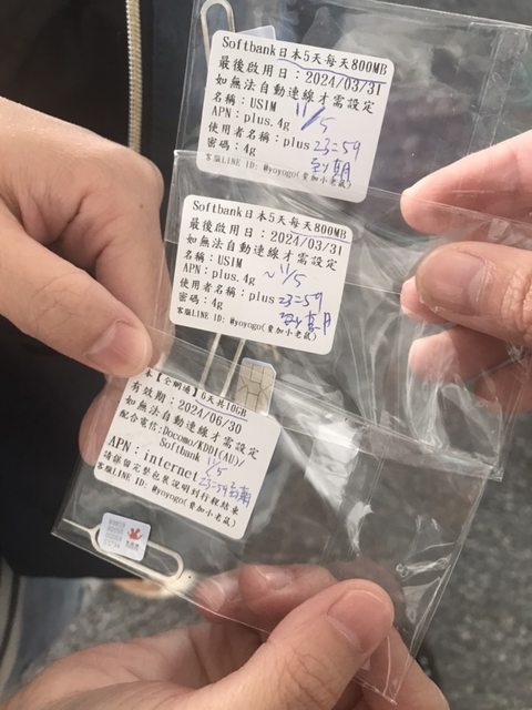 日本SIM卡3張,均到11/5 23:59