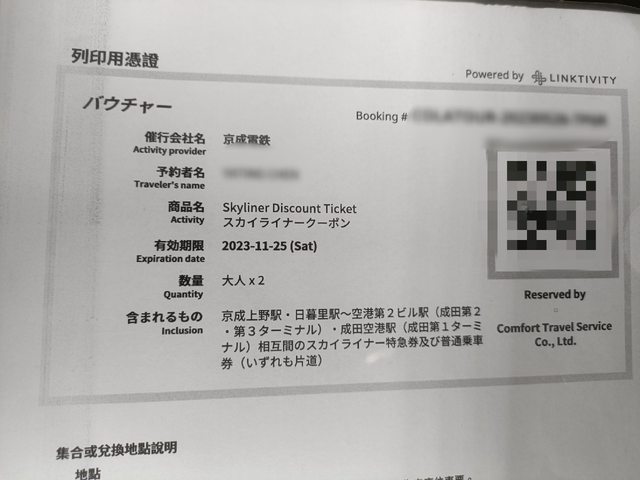 1. 讓售品項:京成電鐵skyliner單程票2張(不分售)2023/11/25前使用