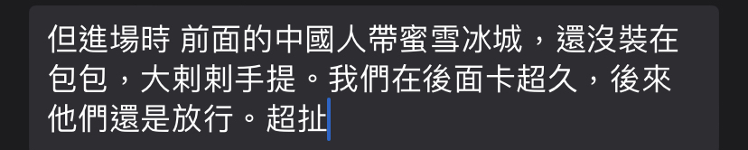 噓 flutter8 : 不要再亂推薦人家很寬鬆可以帶食物了,最近一堆帶 11/10 09:06