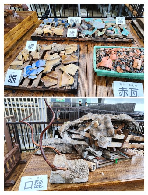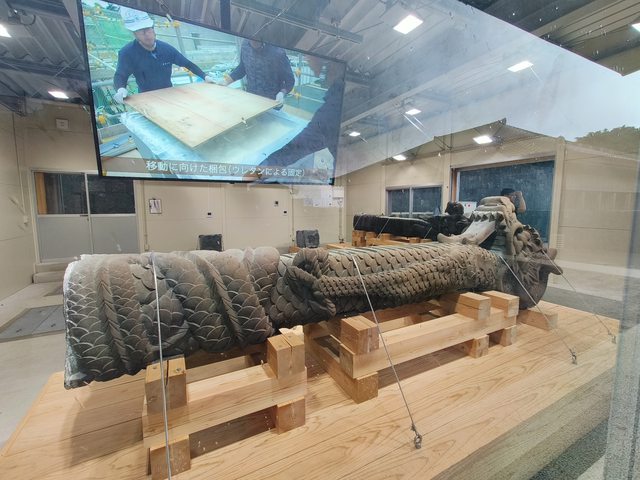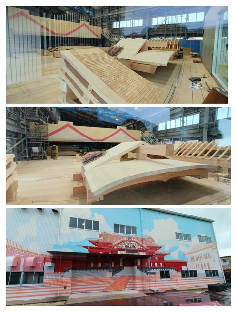 眾所皆知首里城在2019因大火毀損嚴重,倖存的大龍柱修復後有展示出來。正殿被工事設