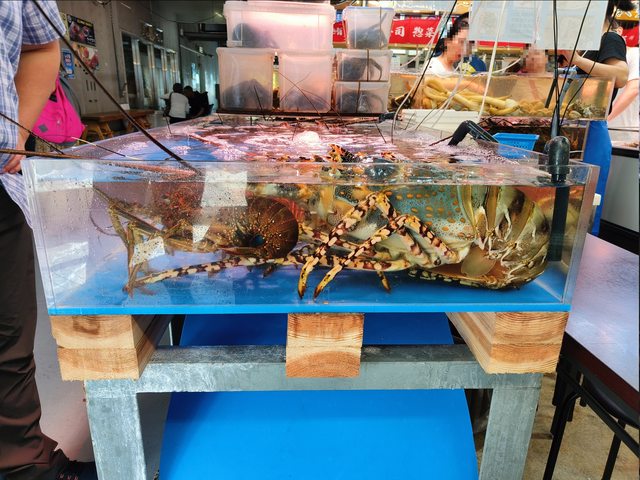 。攤位有巨大龍蝦,這真的會有人買嗎...吃完看到便宜大腹買了分來吃,好多攤都有賣