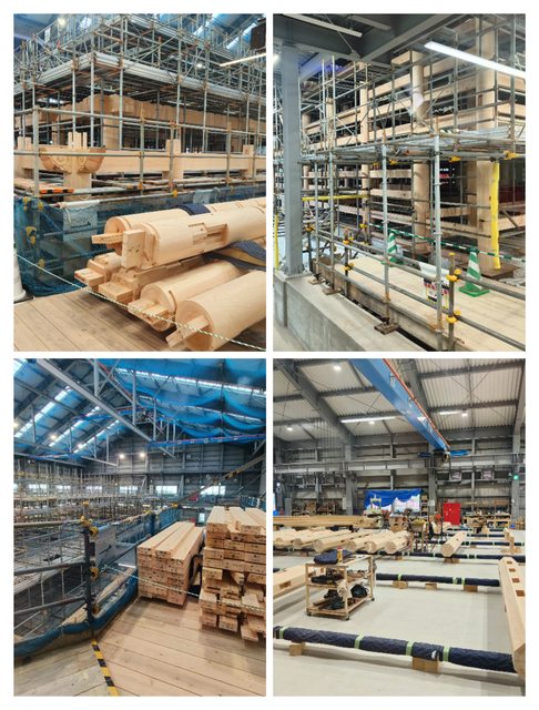 施圍起來,不過能看到各種處理到一半的木材擺放在旁邊,明明是作業現場不過地板沒什