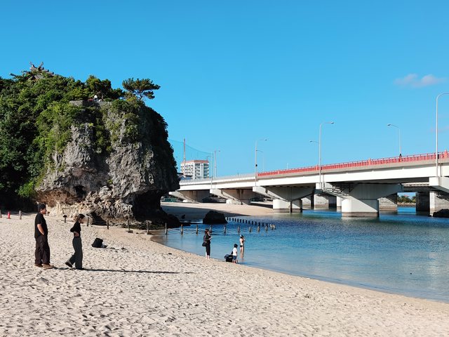 、有人在玩水(雖然告示牌寫這季節禁止游泳) 波上宮台灣遊客頗多,時不時聽到台語,