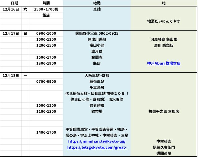 → phoenixh : 19不行清水寺跟奈良只能能選一個。別人的必去不是11/12 09:46