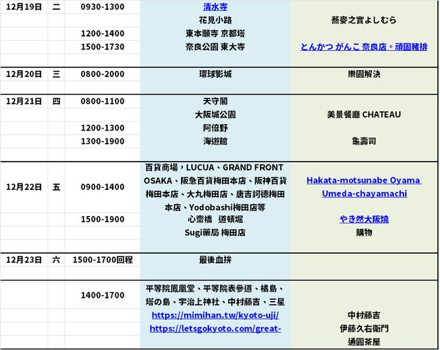 推 wwwwwwww : 你19號奈良可以直接劃掉,你自己預排沒注意到,清水 11/12 12:00