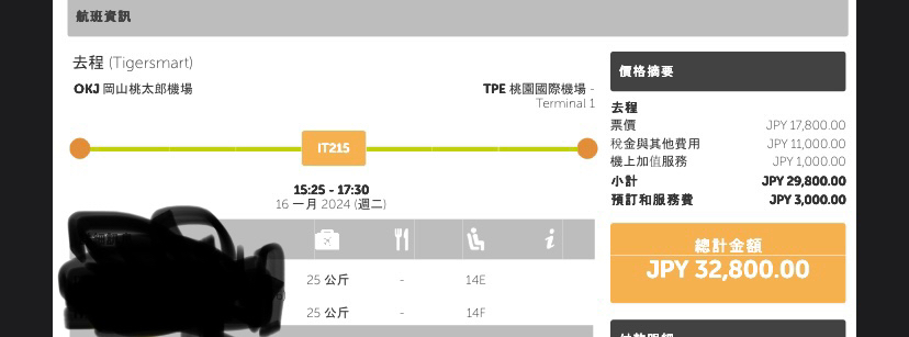 → AmyLien : 1/1-1/4 桃園-大阪單程都有放票,我有搶到1/3的IT2 11/16 10:18