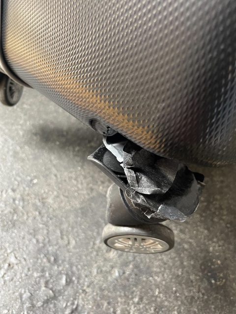 一開始是從機場搭地鐵下車之後才發現輪子整個掉了