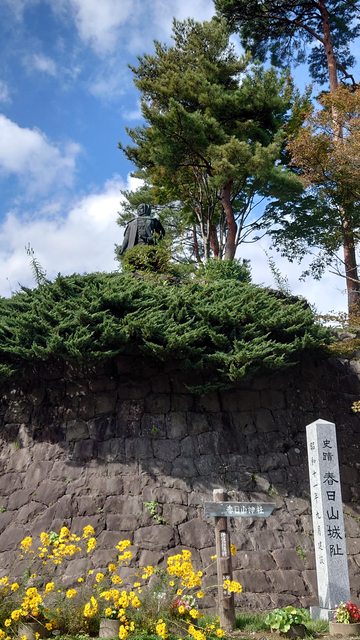 而是在稍遠的春日山城跡物語館,吃飽飯就又開車回春日山的附近,