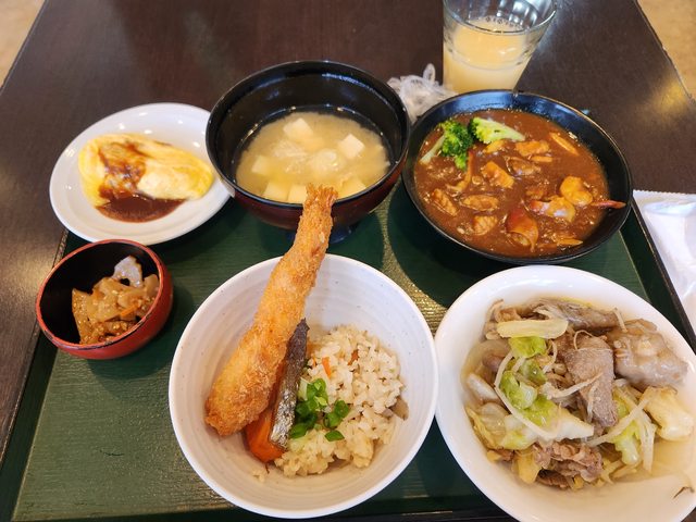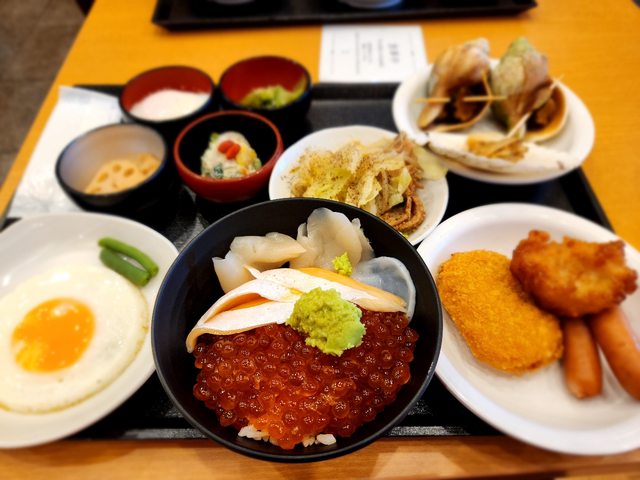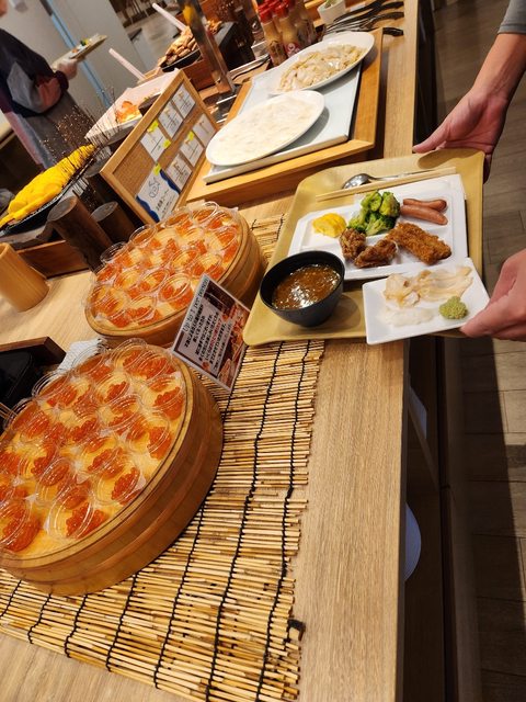早餐種類多,有鮭魚卵、生魚片、湯咖哩。