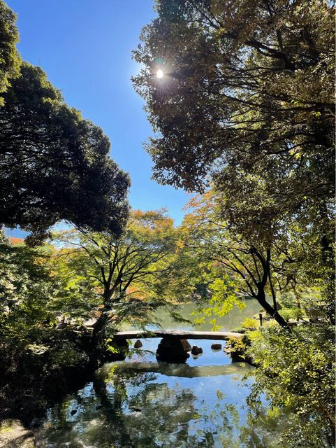 剛好位置離六義園很近,就在裡面的樹下吃了一串葡萄,這邊幾乎都還是綠葉,估計還要