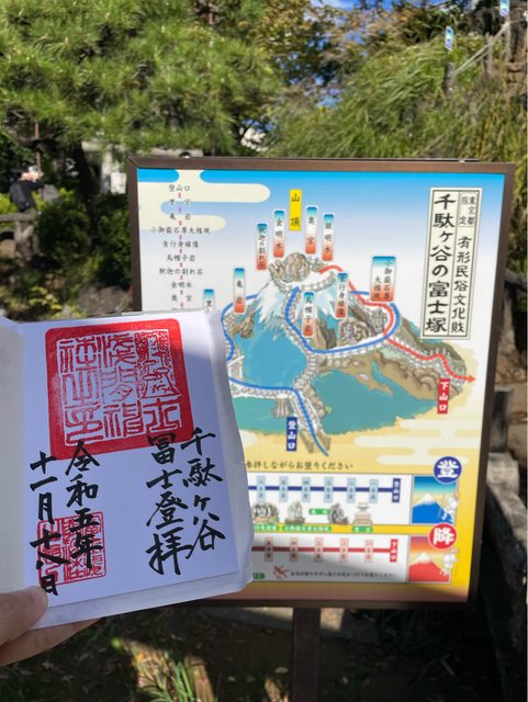 去推特神社的商品部蓋章登山證,好像是古代時天龍東京人喜歡富士山但嫌太遠路途艱難