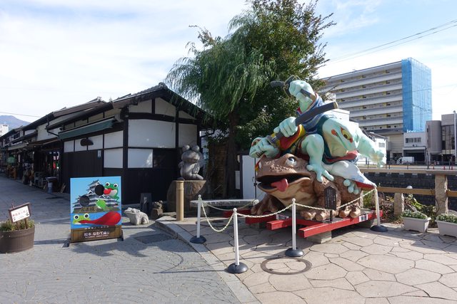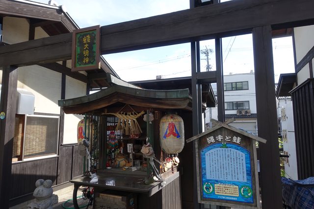 道路中段奉祀著「蛙大明神」。