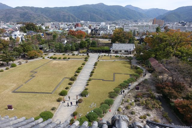 從本丸入口處買完票進去後,穿過黑門,就會看到本丸御殿跡及天守。