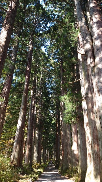 走過隨神門就會看到兩旁都是巨大杉木的杉木道,這邊的杉木樹齡都超過400年,