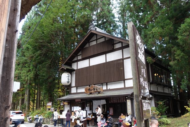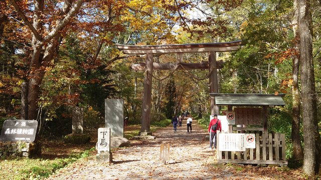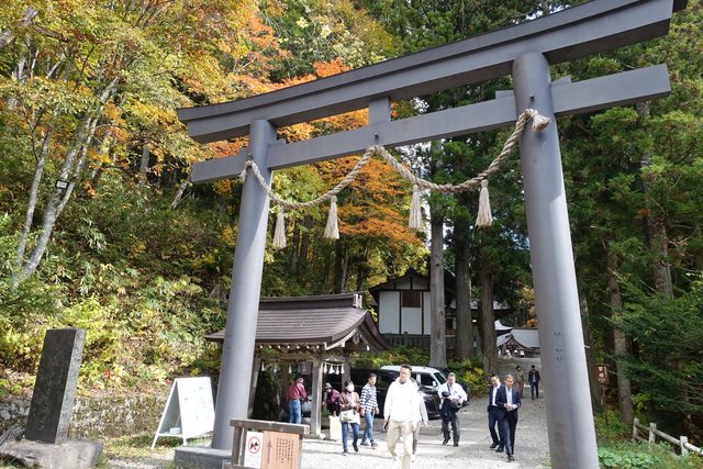 離開湯田中溫泉區,開了一段距離的山路,就抵達有名的戶隱神社奧社的停車場,