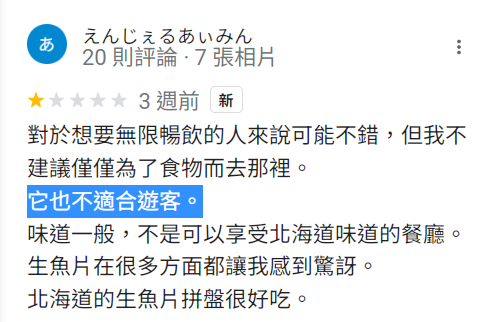 → ktoaoeex : 只能看負評當掃雷參考 沒辦法評斷是否真的好吃 11/24 11:43