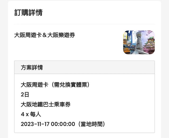 大阪周遊卡2日券*4(使用期限至2024/4/30)