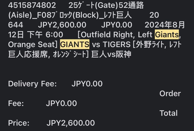 標題[讓售] 8/12 東京巨蛋 巨阪戰外野門票一張